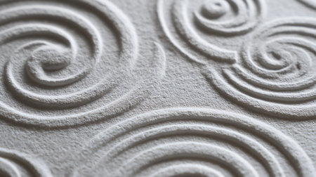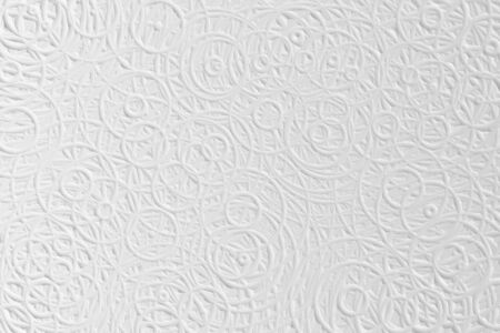 A detailed macro shot of a white textured surface featuring an embossed swirling abstract pattern with soft light casting subtle shadows.