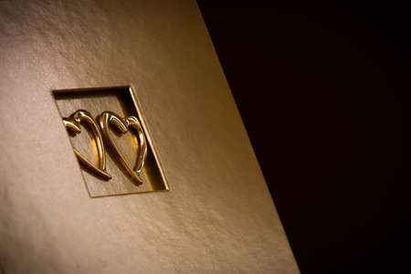 Close-up on the deeply embossed texture and intricate filigree design of a traditional Valentine's c