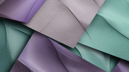 The abstract background of metal texture with empty space in lavender, mint green, and olive green colors. 3D illustration of exuberant.