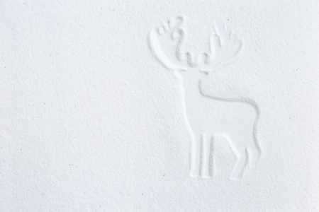 Snow texture background with embedded Christmas patterns and objects at corners, white space in center