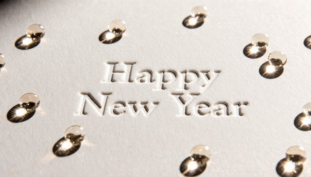 Sparkling reflections surround a message wishing joy and happiness for the New Year. The elegant design captures the spirit of renewal, hope, and new beginnings in a striking way.