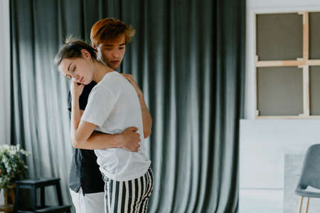 Couples asian people hugging in lovely and romantic moment togethe,Valentines day concept,First date
