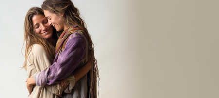 Tender moment between two young women sharing an affectionate embrace outdoors