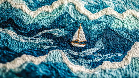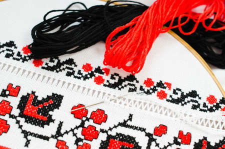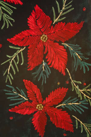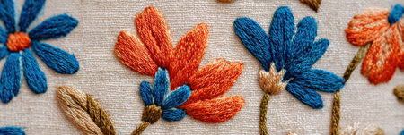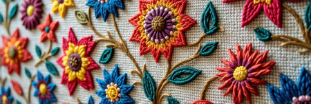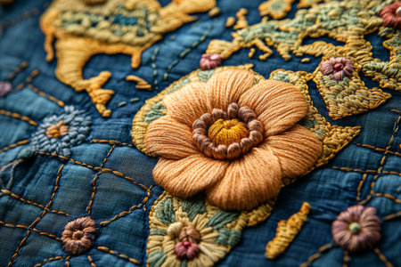 Handcrafted embroidery patterns. Every seam and stitch of the handmade embroidery is visible in this detailed macro shot.