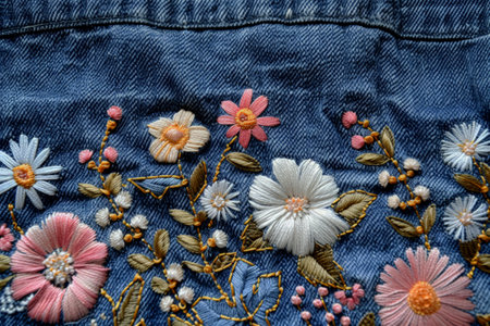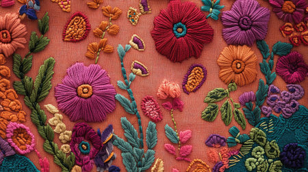 Explore vibrant floral embroidery patterns showcasing handcrafted artistry and texture