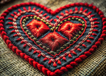 Red Black Embroidered Heart Fashion Detail - Layered Textile Design