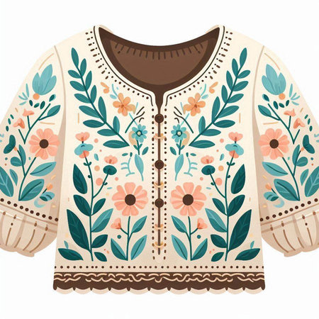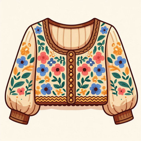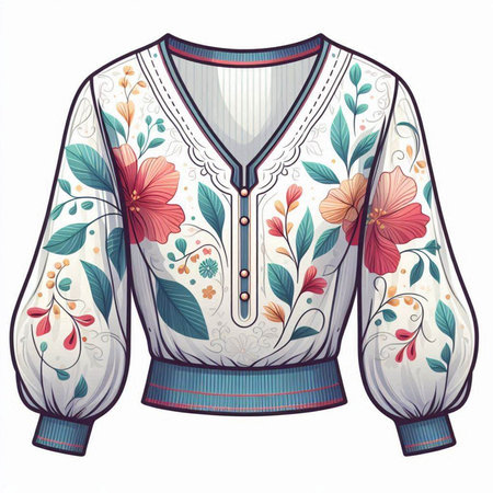 Vintage blouse with hibiscus flowers. Vector illustration.