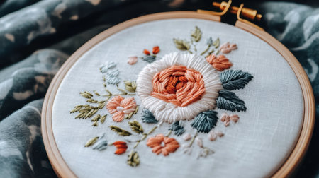 This image showcases a detailed close-up of exquisite floral embroidery on soft fabric, blending vibrant colors and intricate textures for an artistic display.