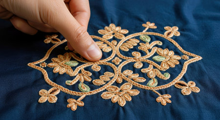 embroidery ornament on blue material