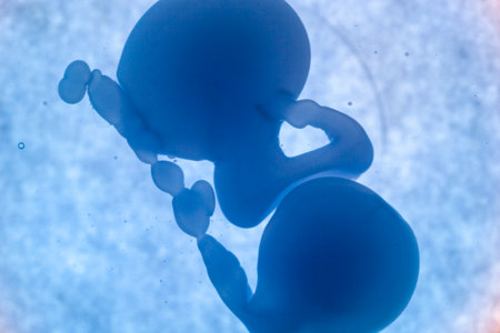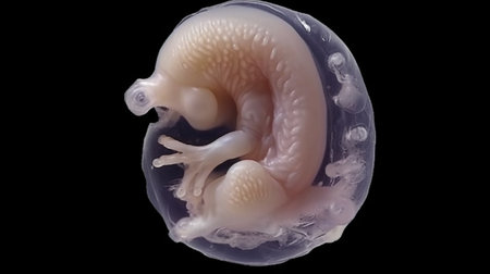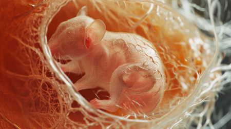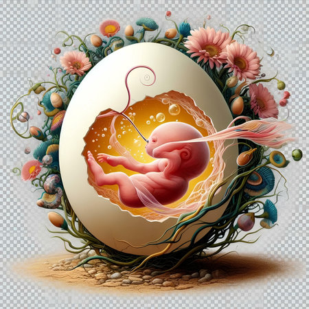 Human embryo developing within the womb, illustrating the intricate process of fetal growth and life, representing themes of reproduction, medical science, and in vitro fertilization