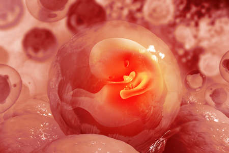 Digital illustration of a fetus in an egg cell - 3D render