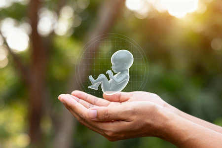 Glowing fetus in hands: symbolizing life, care, and hope.