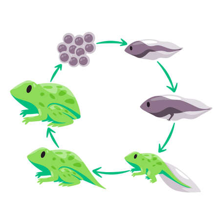Life cycle of frog metamorphosis from eggs tadpole to froglet and adult