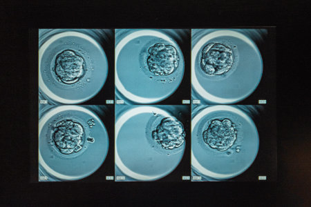 View through microscope at in vitro fertilization process