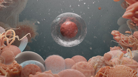 3D illustration of Cells under a microscope concept for Cellular Therapy and Regeneration