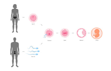 The initial period of fetal development. The structure of the zygote, blastocyst. Infographics. Vector illustration on isolated background.