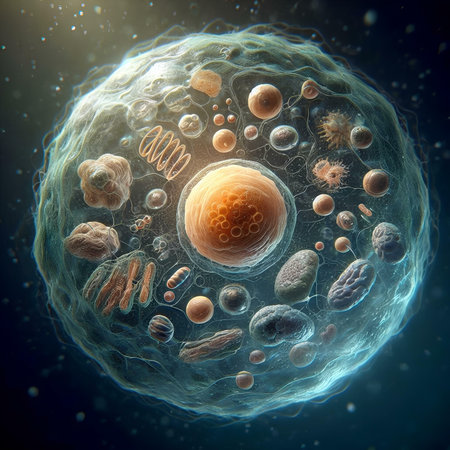 Eukaryotic cell, nucleus and organelles and plasma membrane - 3d render
