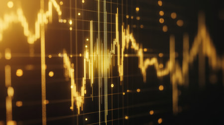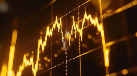 A vibrant financial graph displaying data trends with golden highlights. Perfect for showcasing market analysis, investment insights, and economic performance.