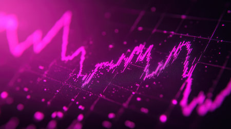 A captivating digital artwork depicting vibrant pink and blue elements on graphs, illustrating financial trends and market analysis for modern technology applications.