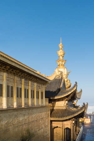 gold buddha and temple at emei mountain scenic spots, sichuan province, China