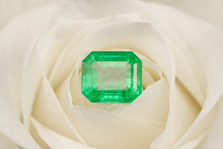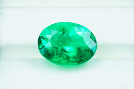 Stunning Emerald Gemstone with Brilliant Green Hue on Soft Focused Background.