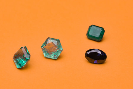 A pile of green and blue gemstones on a table. The stones are of different shapes and sizes, and they appear to be of high quality. Concept of luxury and elegance