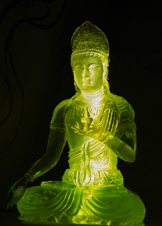 Statue of the Buddah with green back light