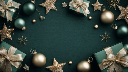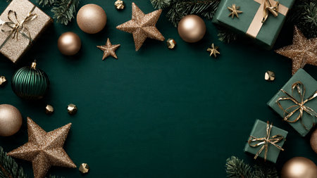 Emerald holiday composition with bright golden stars arranged for high-end branding.