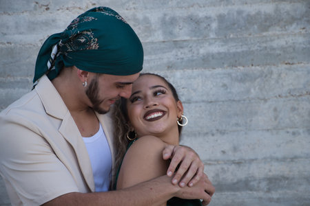 Happy In love couple smiling and hugging eachother outdoor