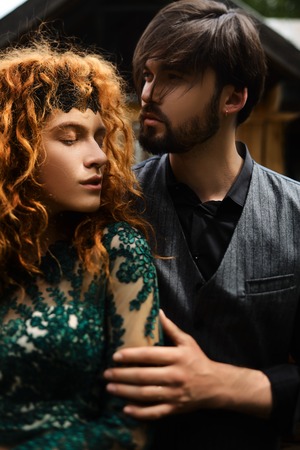 Young couple in love outdoor.Stunning sensual outdoor portrait of young stylish fashion couple. Summer wedding love dating