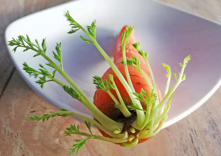 Growing carrots,placed on brown wooden background