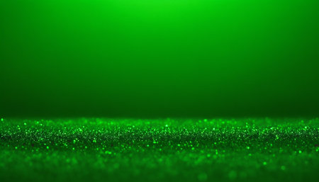 Sparkling green glitter particles with a soft bokeh effect, creating a festive and vibrant textured background perfect for celebrations or design.