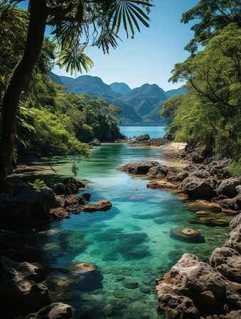 Peaceful Beach Cove with Crystal Clear Waters and Exotic Foliage