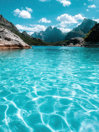 Clear turquoise water in a mountain lake
