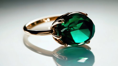 Emerald on a reflective surface. Shallow depth of field. generative ai
