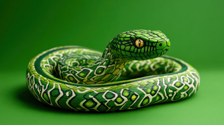 Modern green snake sculpture with clean design, set against a monochrome green backdrop.