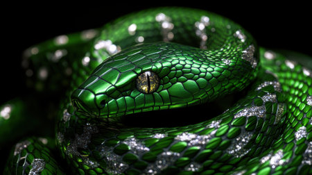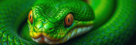 Detailed Green Snake with Scales and Eyes in Focus. 2025 Chinese Zodiac Symbol - Year of the Snake