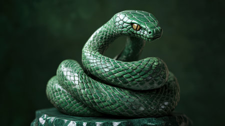 Intricately carved green snake with bright emerald eyes, symbolizing 2025.