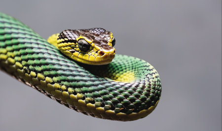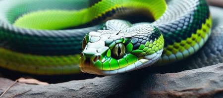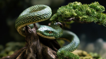 this viper, a stunning specimen of reptilian beauty, is captured in a serene and intimate setting, exemplifying the principles of japanese minimalism, where simplicity and subtlety reign supreme, in a breathtaking 32k high-resolution photograph that invites the viewer to contemplate the essence of nature. ai generated