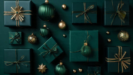 Premium emerald holiday presentation with sophisticated gold decorative pieces.