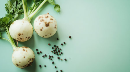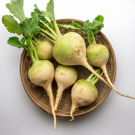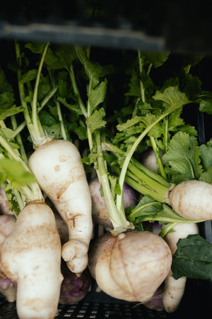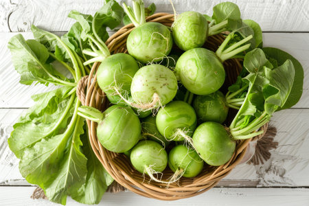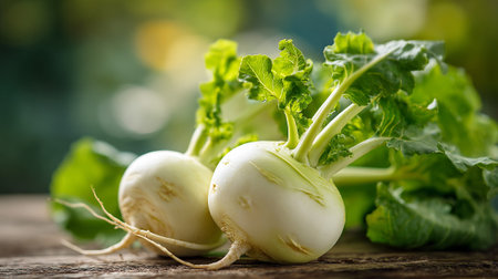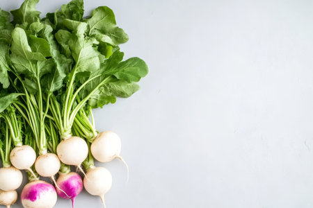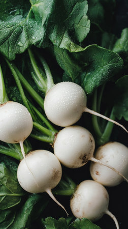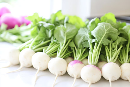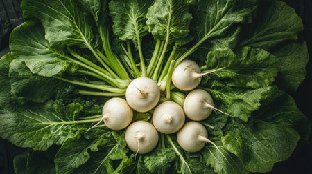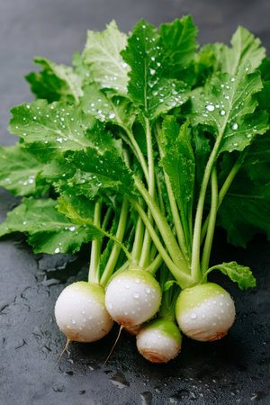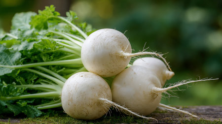 Fresh Turnips with Greenery: A Vibrant and Healthy Vegetarian Food Display