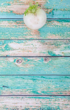 Small white radish vegetable over wooden background