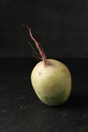 Whole fresh ripe turnip on black table, closeup