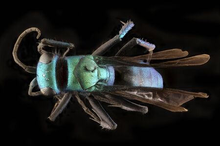 Close up of a chrysis spec., A cuckoo wasp. Narrow field of depth.