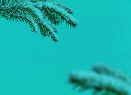 Creative Christmas tree layout with snow on pastel blue background. Minimal abstract winter holidays concept. With copy space.