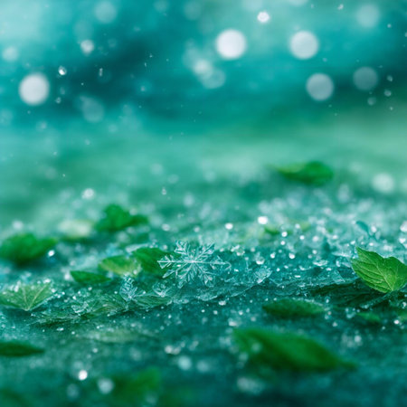 Close-up view of shimmering turquoise and emerald green crystals reveals an enchanting interplay of light and reflection, creating a beautiful bokeh effect that mesmerizes the eye.