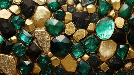 A seamless combination of gold and emerald stones, creating a glamorous and dazzling background of wealth and luxury.