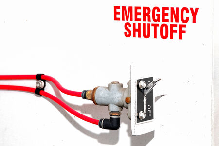 Close up of emergency stop button switch, an electrical device for safety, installed on the machine