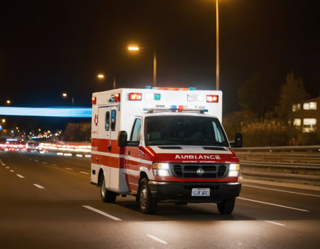 Fast-moving ambulance in darkness showcases the vital role of emergency services, highlighting speed and urgency needed during health crises and critical situations.
