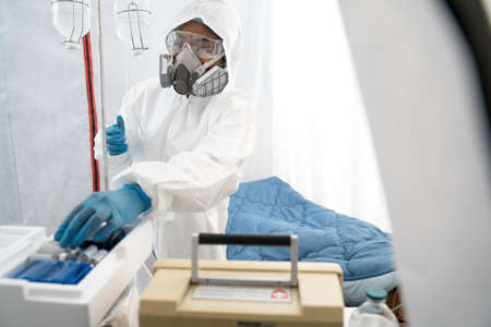Doctor taking some medical tools while treating patients with coronavirus